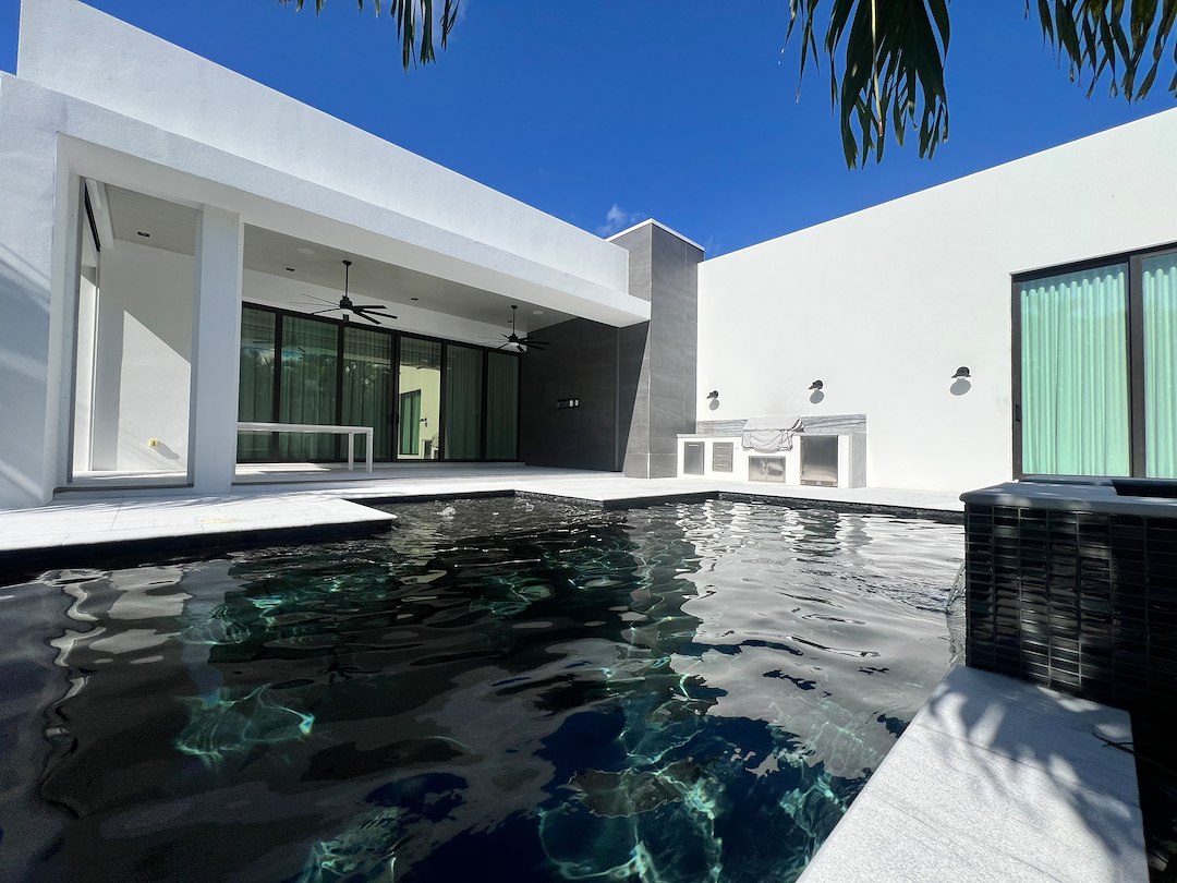 As for the pool deck, we applied a different product due to the difference in material of the pavers. The pavers our customer chose to install are sandblasted marble. Unlike traditional marble, these pavers aren't the smoothest, which helps lessen the likelihood of an accident around the pool. This change in material requires a change in product as well as how it is applied. We used an impregnating sealer which will protect the paver from within. The main advantage this type of sealer offers is that is does not change the texture of the surface. This is the best practice to prevent any future accidents for all parties involved. This type of sealer also requires very little effort to keep the pavers clean.